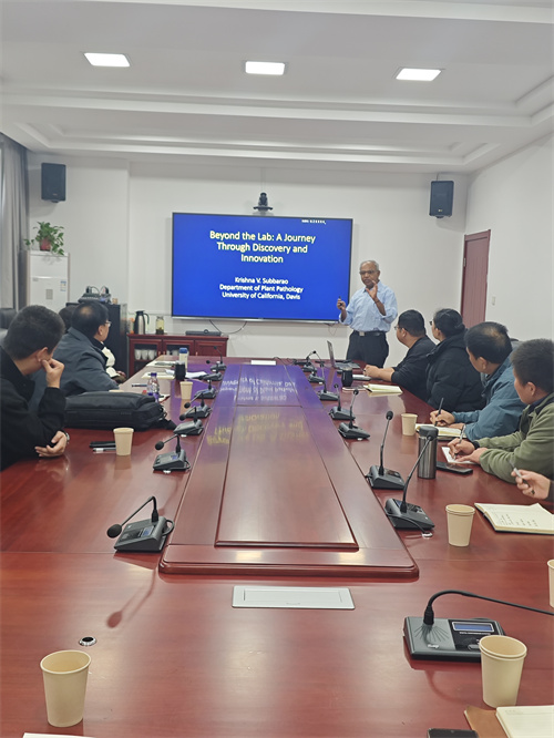 近日,应植保所邀请,《Phytopathology》(《美国植物病理学报》)前主编、加州大学戴维斯分校植物病理学系 Krishna V. Subbarao 教授来访,并作题为 “Beyond the Lab: A Journey Through Discovery and Innovation”的学术报告。
